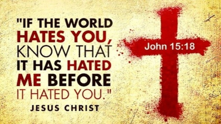 John 15:18 “If the world hates you, keep in mind that it hated Me first. If you belonged to the world, it would love you as its own. As it is, you do not belong to the world, but I have chosen you out of the world. That is why the world hates you.