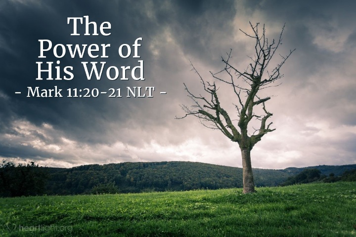 11:20 In the morning, as they went along, they saw the fig tree withered from the roots. Peter remembered and said to Jesus, “Rabbi, look! The fig tree you cursed has withered!”