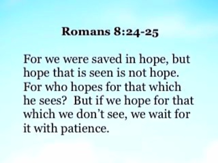 In the Bible, hope is essentially trust in God focused on the future. God has made a lot of promises about salvation and heaven that we don’t see realized yet. Therefore, if we have chosen to place our faith in God, then we sincerely believe, we have hope, that those promises will be fulfilled…in God’s timing.