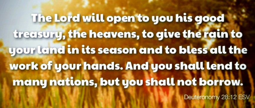 In Deuteronomy 28:12 God promises that IF the Israelites will obey God’s commands in their new land, THEN the Lord will “open the heavens” and bless them with an abundance of crops.