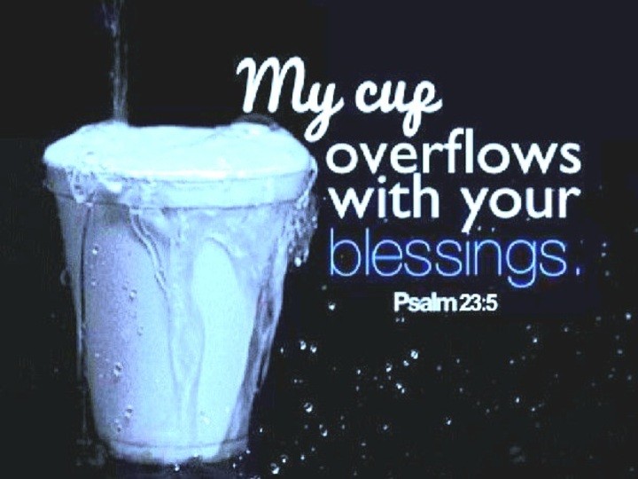 In Psalm 23, a metaphor for God as the Good Shepherd, the phrase “…my cup overflows…”, means God provides more than what is needed (an abundance), just as He has promised.