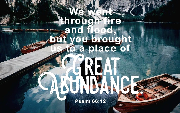Psalm 66:12, remembers the Children of Israel leaving Egypt for the Promised Land, a place of great abundance, described as a land “flowing with milk and honey.”