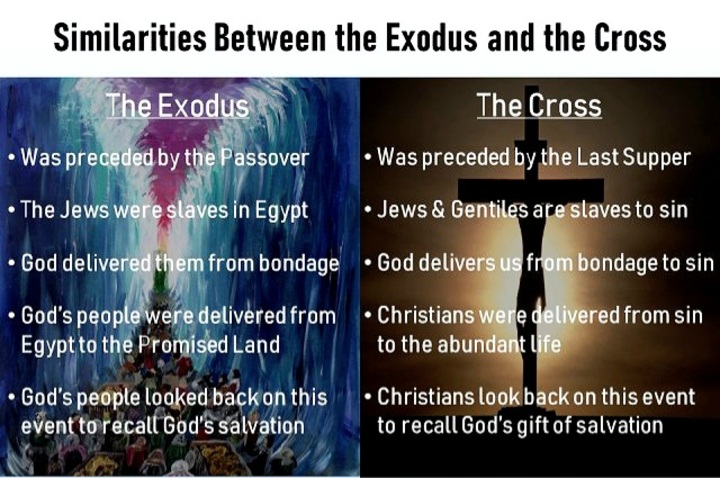 The Exodus narrative serves as a prophetic shadow of Jesus the Messiah, with Jesus acting as a “new Moses” who delivers humanity from spiritual slavery rather than from physical bondage. Other parallels between the Exodus of Israel and Jesus Christ are: