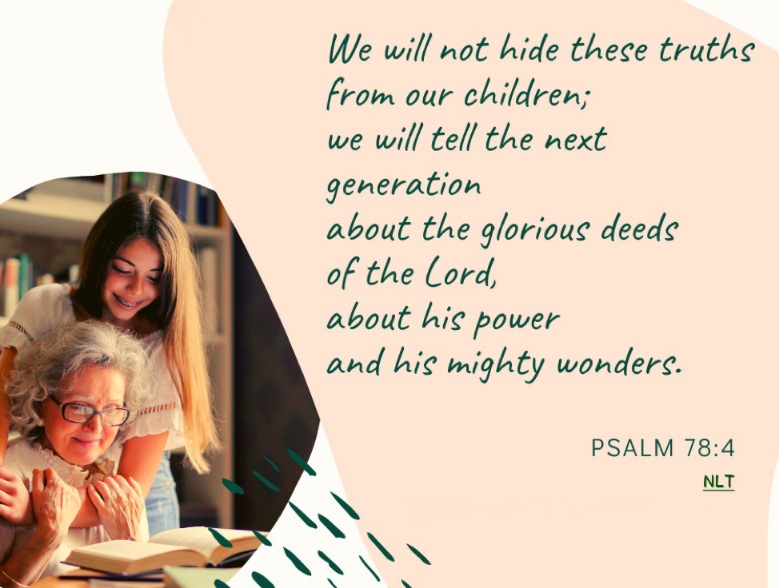 The new element in this Psalm is the importance of passing on the stories of God’s demonstrations of His glorious deeds, power and miracles to the next generation.