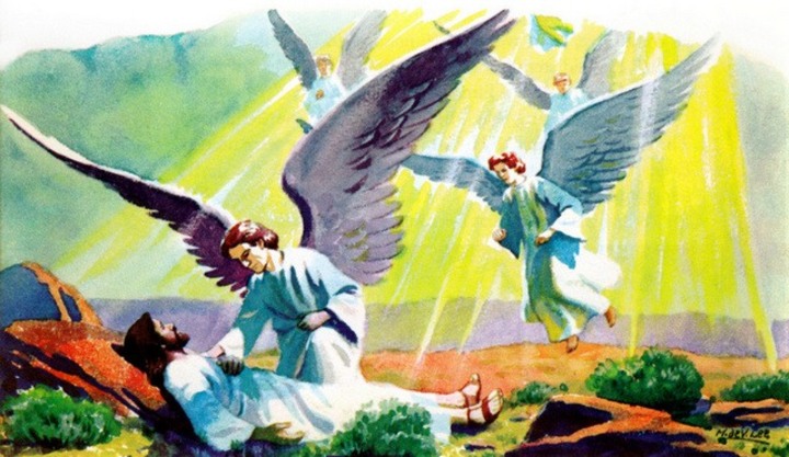 Jesus and angels by artist and illustrator Herbert Navigius Rudeen 1888-1985, United States