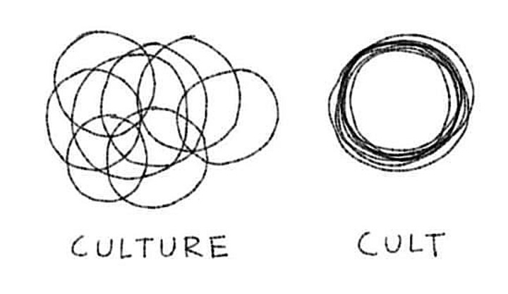 a. In a cultural group, there is room for diversity–freedom of expression and freedom of speech–you can ask questions, you can speak out, you can express differing opinions, and you can freely discuss differing ideas.b. On the other hand, in a cult, there are none of those things. Everyone is expected to say the same things, to believe the same things, and by the use of brain-washing techniques, even THINK the same things. It’s not unity as you have in a shared culture, it is a forced uniformity.