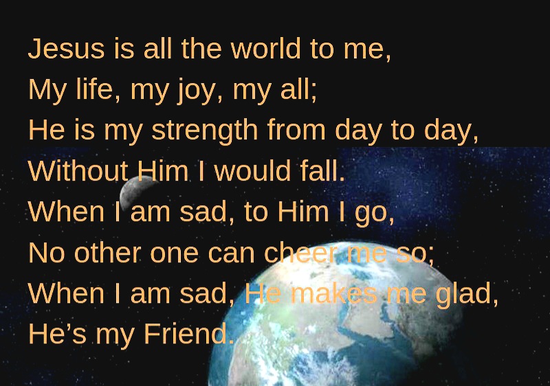 1.c. What do I want Jesus to be in my life? I want Him to be the everything to me I’ve heard from so many others. I want Him to be what this classic hymn expresses, to be All the World to Me.