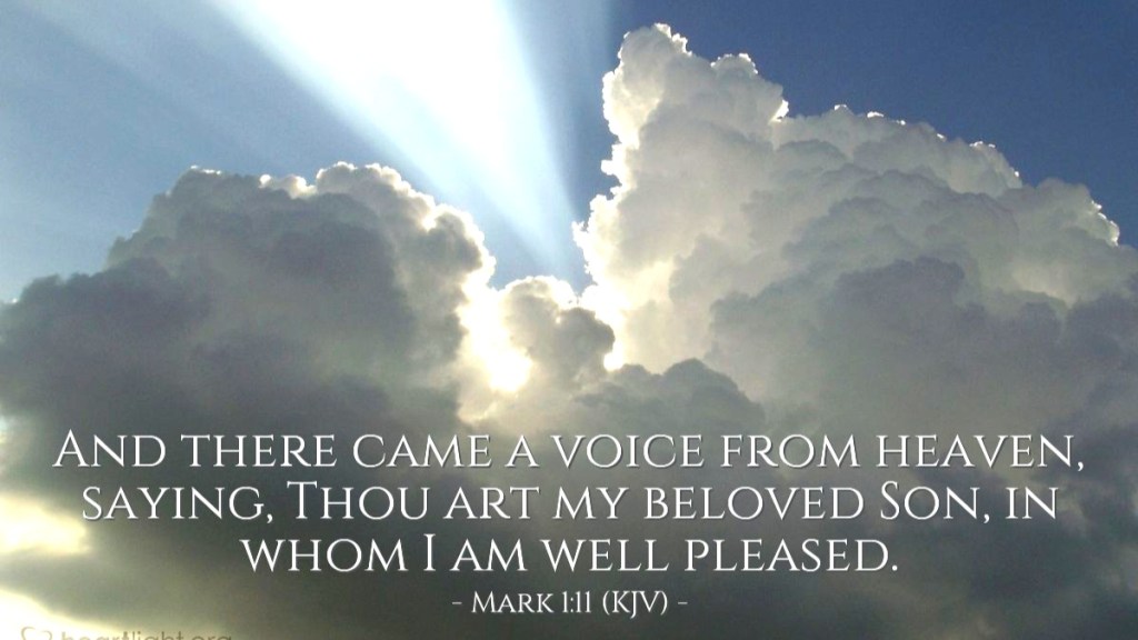 11 And a voice came from heaven saying, “You are my Beloved Son, with you I am well pleased. (Voice = God the Father. Must have been an important event, because the entire Trinity was present!)