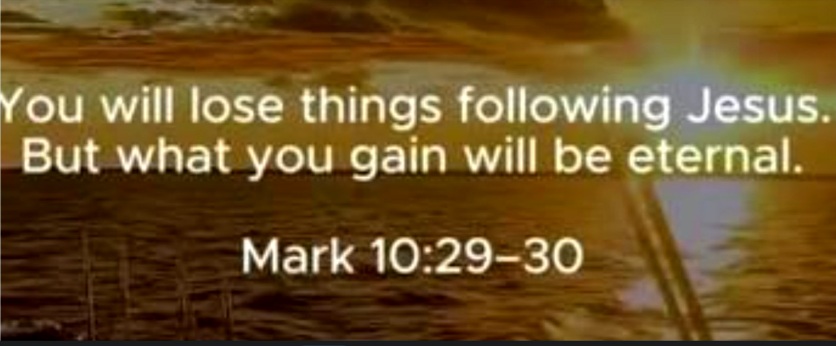 Mark 10:29 Jesus promised, “No one who has left home or brothers or sisters or mother or father or children or fields for Me and the gospel will fail to receive a hundred times as much—and in the age to come, eternal life.”