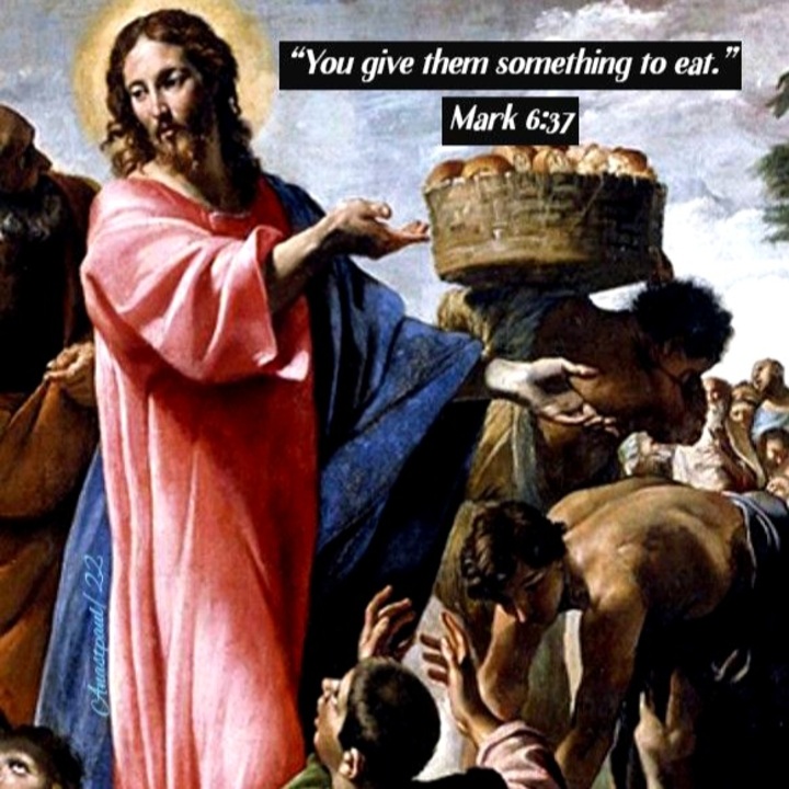 Here we see Jesus had compassion for the crowd and He began teaching them. You can think of this as feeding their spiritual hunger. Later Jesus also takes care of their physical need for food.