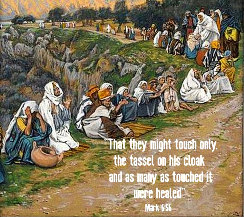 A. Jesus casually walking on water to catch up with His disciples rowing their boat against a headwind. Peter left out the part here where he walked on water too. B. We see Jesus multiply 5 loaves of bread and two fish to feed 5,000 men, with the Twelve each collecting a basket full of leftovers.C. And we see Jesus back across the Sea of Galilee healing multitudes of sick people who lined the road just to touch the edge of His cloak as He walks by.